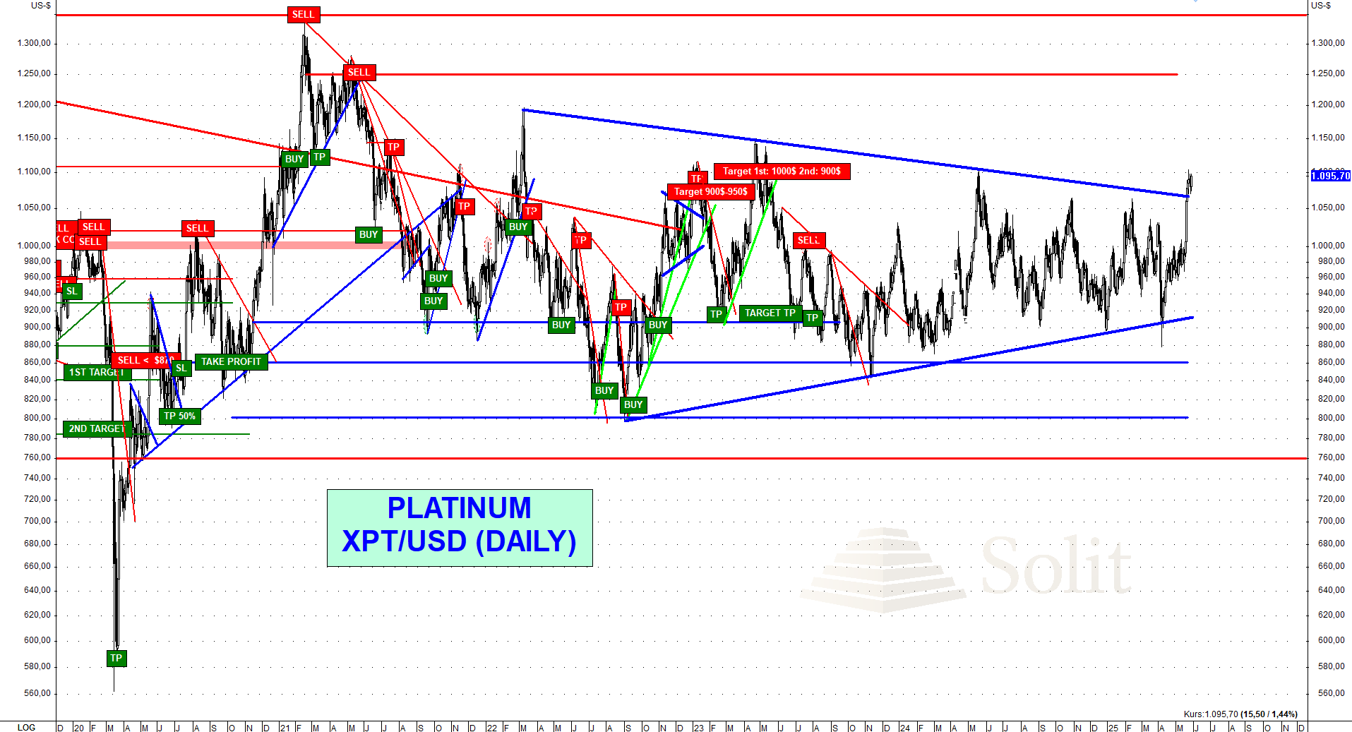 Technische Analyse zu Platin: Bullischer Ausbruch – Platinpreis steigt auf 1.100$ an