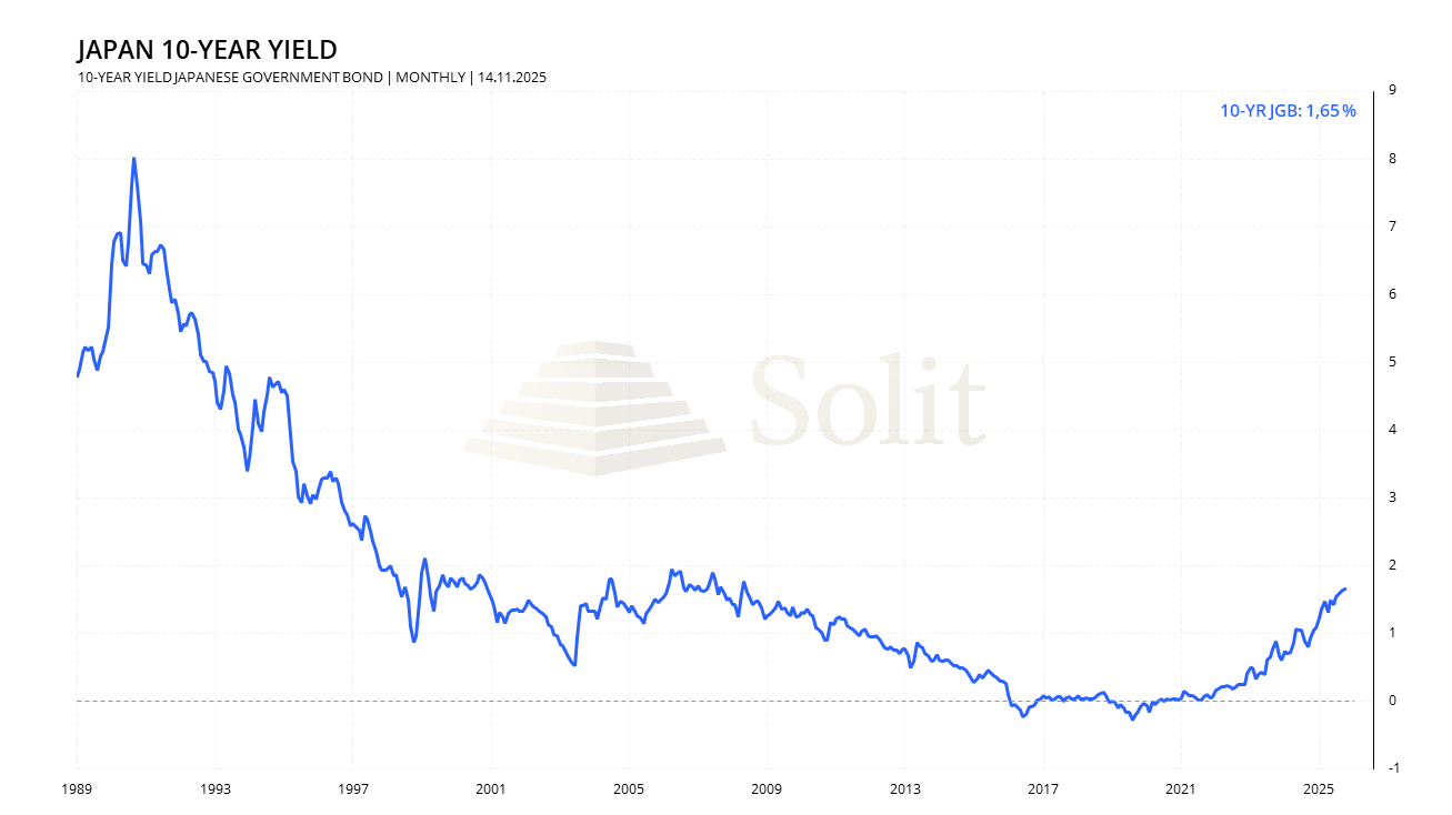 Aktuell verschärft sich die Bewegung am langen Ende der Zinskurve. Die Rendite der 30-jährigen JGBs stieg zuletzt auf rund 3,32 % und nähert sich damit ihrem historischen Hoch von 3,345 %, während die 40-jährigen Papiere mit etwa 3,7 % auf dem höchsten Niveau seit ihrer Einführung notieren. Gleichzeitig handeln die 10-jährigen Zinsen mit über 1,7 % auf einem Niveau, das seit der Finanzkrise nicht mehr gesehen wurde. Die heftigsten Verkäufe konzentrieren sich auf das Segment 20 bis 40 Jahre, was die Zinskurve deutlich steiler werden lässt und die Bank of Japan bereits zu punktuellen Stützungskäufen zwingen könnte.