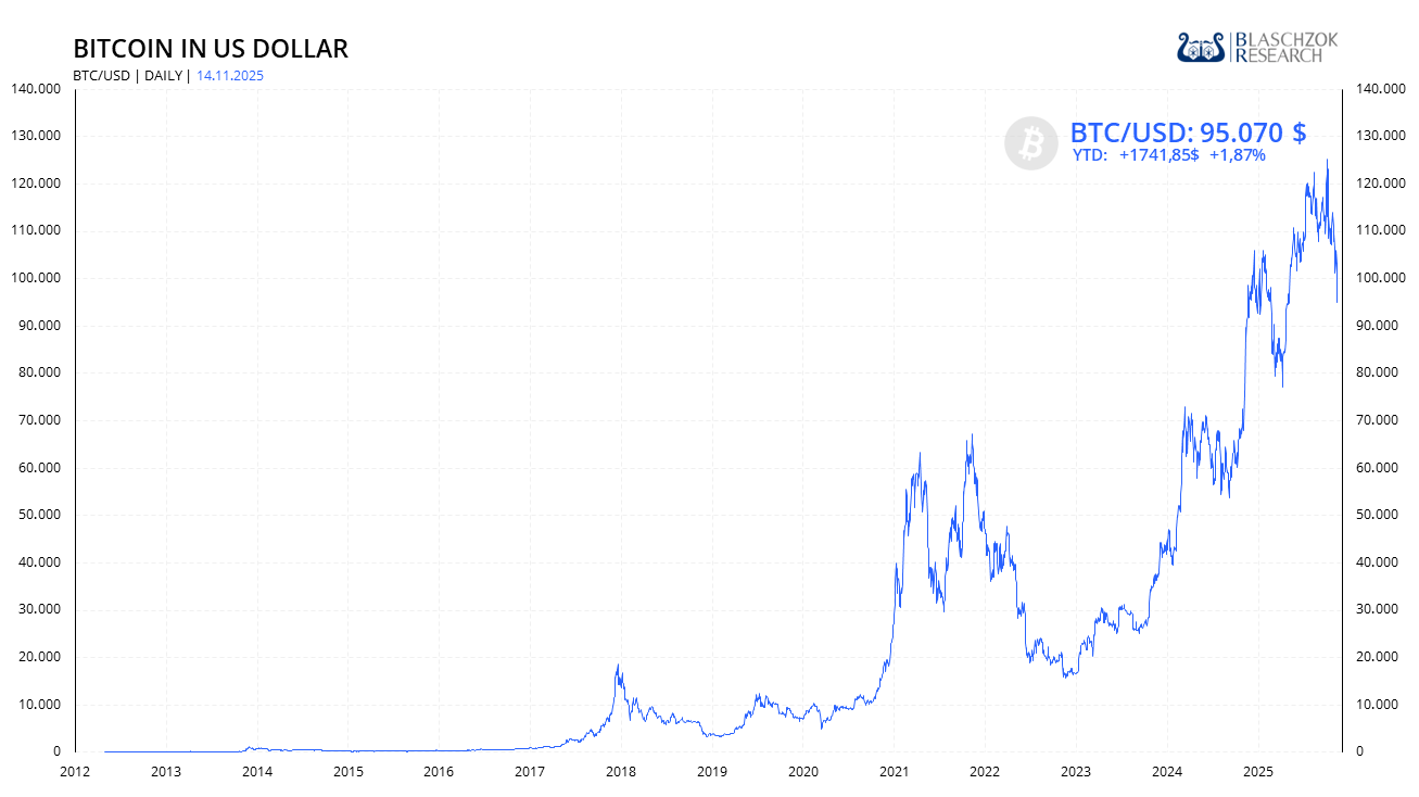 Bitcoin ist und bleibt ein spekulatives Asset, in das man nur Spielgeld investieren sollte. Wer sein Vermögen nachhaltig gegen Inflation schützen möchte, setzt besser auf Gold und Silber und ergänzt sein Depot nur strategisch mit Risikoassets wie Kryptowährungen in kleiner Gewichtung, bevorzugt nach starken Korrekturen und mit der Disziplin, nach kräftigen Rallys auch konsequent Gewinne mitzunehmen.