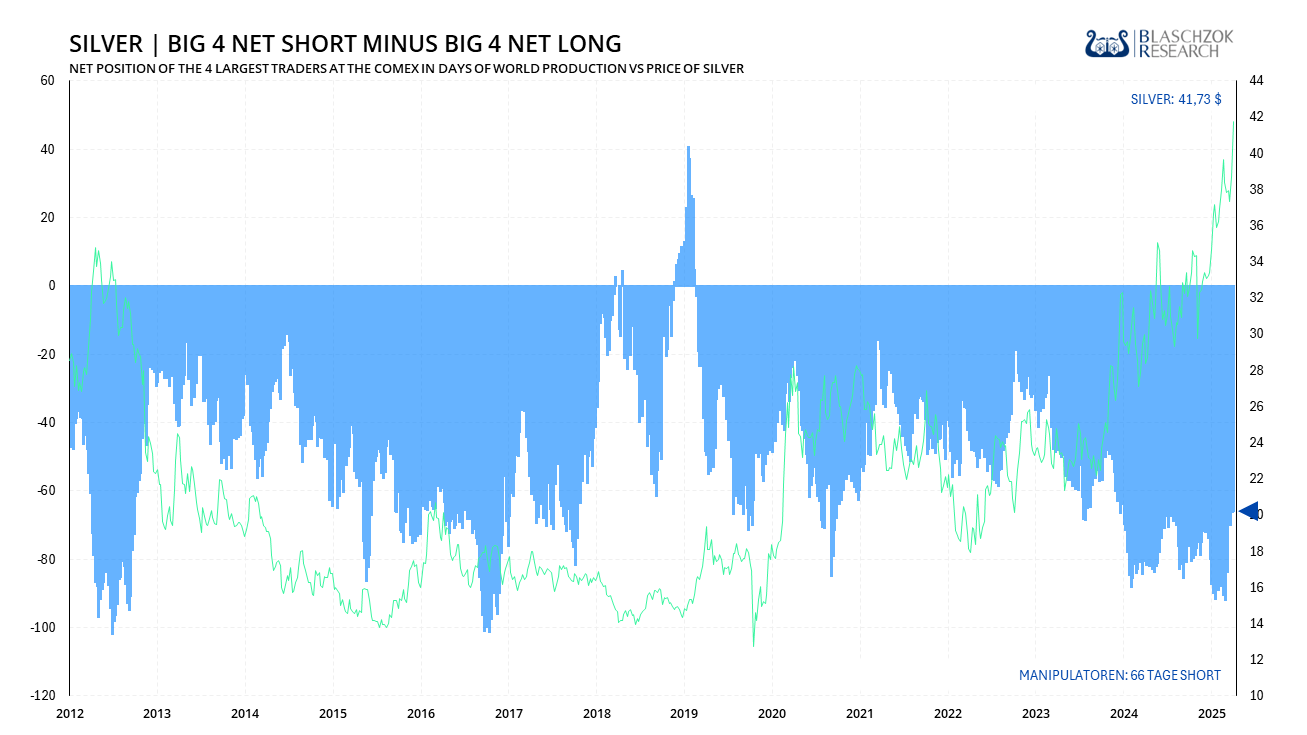 Eine ähnliche Situation sahen wir Anfang des Jahres am Goldmarkt, als der Preis von 2.600 $ auf 3.400 $ stieg, aufgrund der Eindeckungen der Big 4.